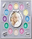 12月に誕生した息子の写真を入れるために購入しました。自宅用に加え内祝も兼ね、実両親と夫の両親用にも購入しました。写真を切るための型紙がついているため、きれいに写真を切ることができました。ただ、一度粘着テープにはってしまうとはがすことができず、位置の微調整や写真の変更が出来なくなるため、我が家では両面テープを使ってはっています。 あと、真ん中(1歳用写真を入れる場所)に外人の赤ちゃんの写真が入っているのですが、存在感があり過ぎるため、無地の紙が入っている方が良かったです。今は息子と夫3人で撮った写真を仮に入れています。 でも、非常にかわいらしく、大きさもちょうど良く、毎月写真が増えていくのを皆楽しみにしています。