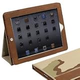 米国Snugg社製 iPad 2 レザーケースカバー、伸縮性ハンドストラップ付きフリップスタンド、内部は最高級ヌバックファイバー (デザートカモ)– ケースカバーの開閉で、 iPad2が自動的に立ち上がり、休眠状態に。Wired Magazineにも紹介された最高級デザイン